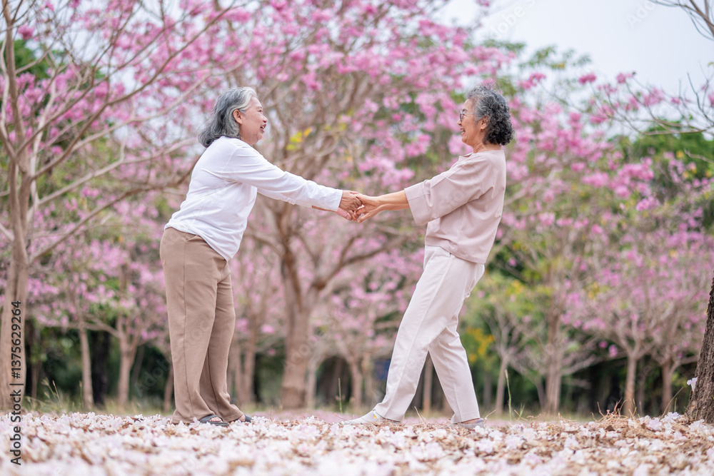 Elderly women with gray hair enjoying a beautiful moment together