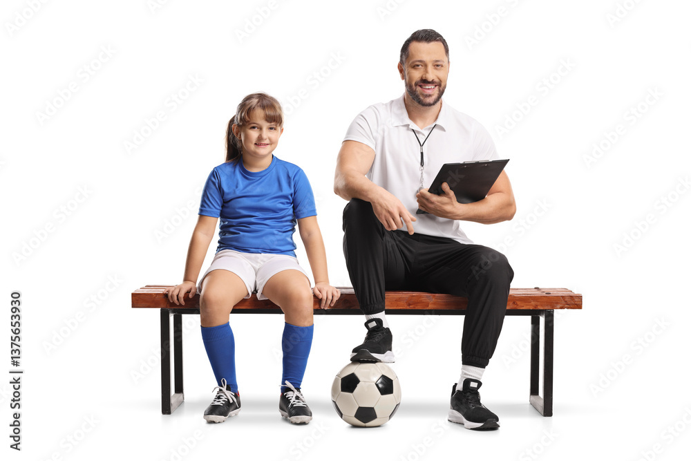 Football coach sitting on a bench with a girl