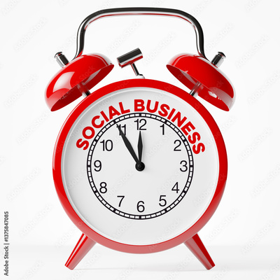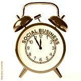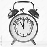 Wecker zeigt auf Schriftzug „Social Business“ als Konzept