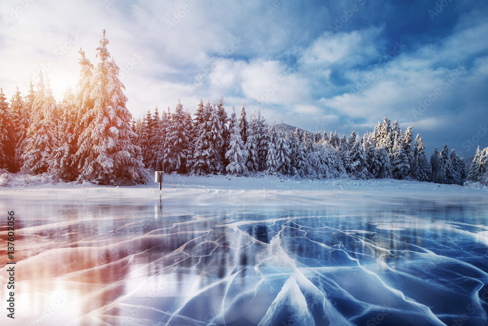 Blue ice and cracks on the surface of the .