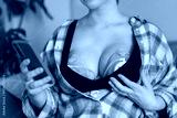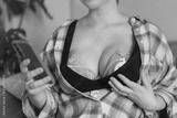 No face woman using electric hands-free breast pump for baby feeding. Woman using breast pump while relaxing at home and checking her phone. Comfortable modern Breastfeeding concept. Selective focus.