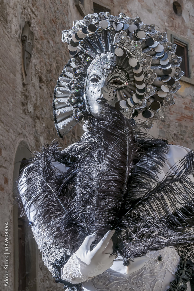 Superb carnival mask on parade in the Tuscan village of Castiglion Fibocchi, Arezzo, Tuscany, Italy