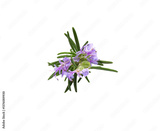 Rosemary sprig in flowers isolated on white background