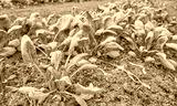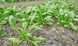 Organic vegetables growing in a polytunnel, selective focus.