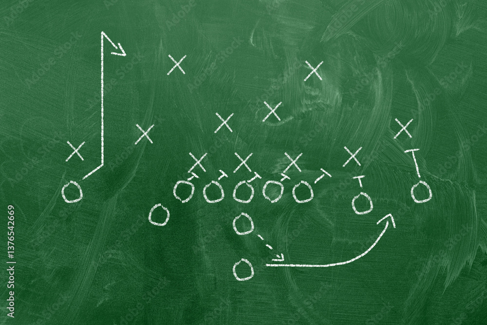 Scheme of football game on chalkboard background
