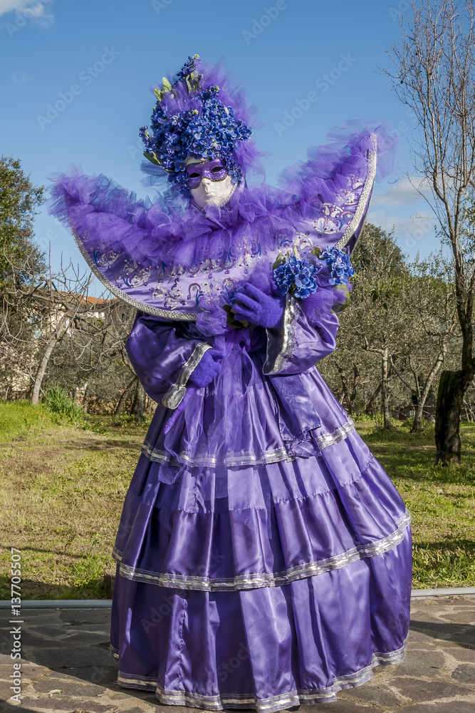 Superb carnival mask on parade in the Tuscan village of Castiglion Fibocchi, Arezzo, Tuscany, Italy