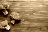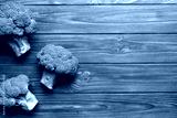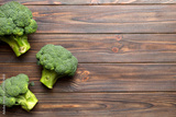 Top view fresh green broccoli vegetable on Colored background. Broccoli cabbage head Healthy or vegetarian food concept. Flat lay. Copy space