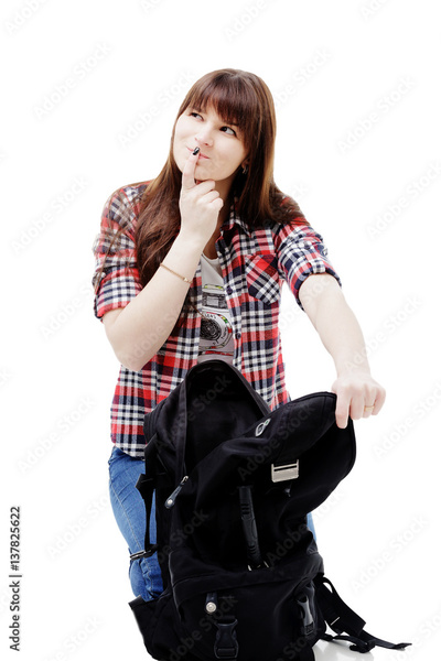 woman with bag going on a journey on white background