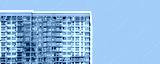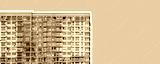 Building with modern architecture. Tall highrise condominium, apartment block, home and dwelling, housing development, urban neighborhood, real estate investment, downtown metropolis..