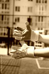 A dynamic shot captures an impressive display of goalkeeper gloves, perfectly positioned and ready for action, all set against the backdrop of a sunny day on a vibrant outdoor field