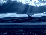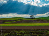 Hügellandschaft mit Lichtstrahlen im Frühjahr