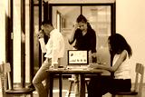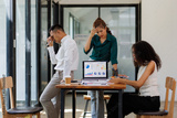 teamwork of tired young business with documents tax laptop computer in office. Sad, unhappy, Worried, Depression, or employee life stress concept