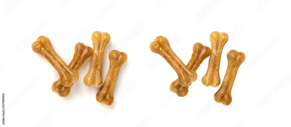 Rawhide bones, collagen dog chew food, pressed dry kibble, natural long-lasting canine treats