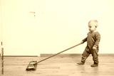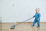 Adorable Toddler Assisting with Various Household Chores Little One Joyfully Using a Mop to Clean the Wooden Floor, Embracing Responsibilities and Exploring the Exciting World of Cleaning