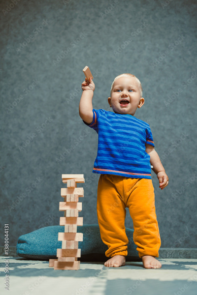 A Joyful Toddler Happily Engaging in Play with Bright and Colorful Wooden Blocks in a Cozy Indoor Setting, Filled with Creativity and Imagination, Encouraging Learning and Development Through Play