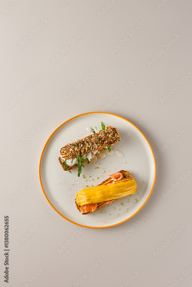 Elegant Plated Gourmet Pastries on Minimalist Background with Subtle Lighting