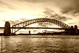 Australian iconic landmark Sydney Harbour Bridge against picturesque sunset sky