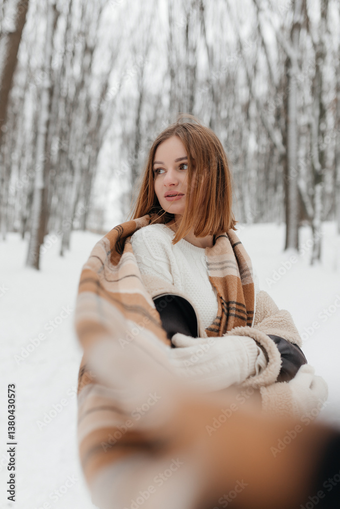 A Young Woman Embracing the Essence of Winter Enjoying Cozy Moments in a Serene Snowy Forest Filled with Calm Atmosphere and Natural Beauty, Perfect for Exploration and Relaxation