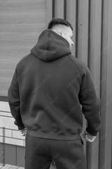 Casual Fashion A Stylish Young Man Casually Posing in a Cozy Hoodie While Leaning Against EyeCatching Modern Architecture, Blending Comfort with Contemporary Style. Perfect for Life Portraits