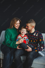Heartwarming Family Moments A Joyful Holiday Portrait in Colorful Sweaters, Reflecting the Genuine Affection and Happiness Shared Among Loved Ones During This Special Festive Season at Home Together