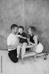 Family Portrait Capturing Joyful, Beautiful Moments with Parents and Their Child in a Stylish, Warm Indoor Setting That Reflects Love and Unity, Emphasizing Bonding and Togetherness