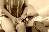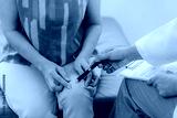 Doctors examine an elderly patient who is suffering from knee pain due to arthritis. The patient is being assisted in his recovery, with an emphasis on pain management and improving mobility.