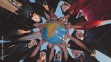Graduates in cap and gown holding globe, representing international education and future professional prospects