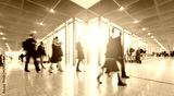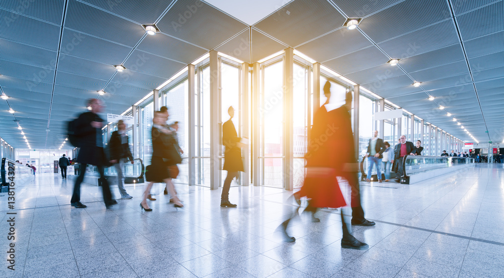 blurred people in a modern hall