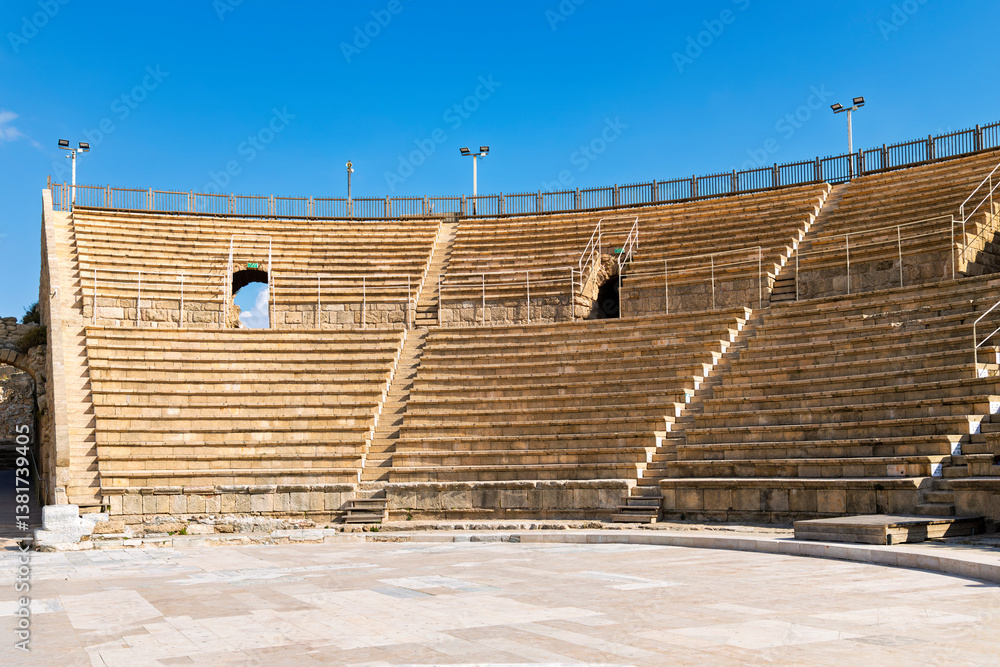 Detail of the ancient first century BCE Roman Caesarea Amphitheater Caesarea National Park, Israel.