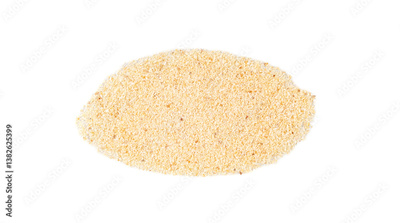 Garlic powder pile isolated, dried granulated chopped crushed garlic on white background