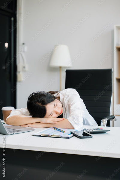 Asian business woman is stressed, bored, and overthinking from working on a tablet