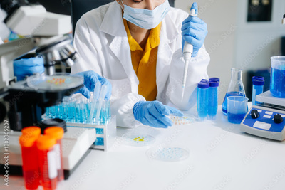 Scientists, beakers, and microscopes in cutting-edge research. Perfect for science and technology projects.