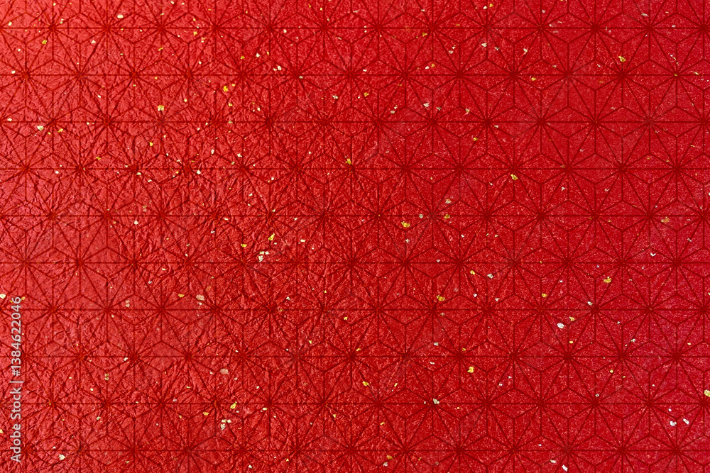 日本伝統の朱色の和紙 金粉と銀粉が舞う和柄デザイン
