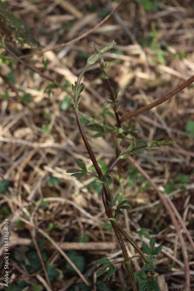 Edible Hop buds growing on a tree trunk in the italian countryside on springtime. Humulus lupulus