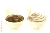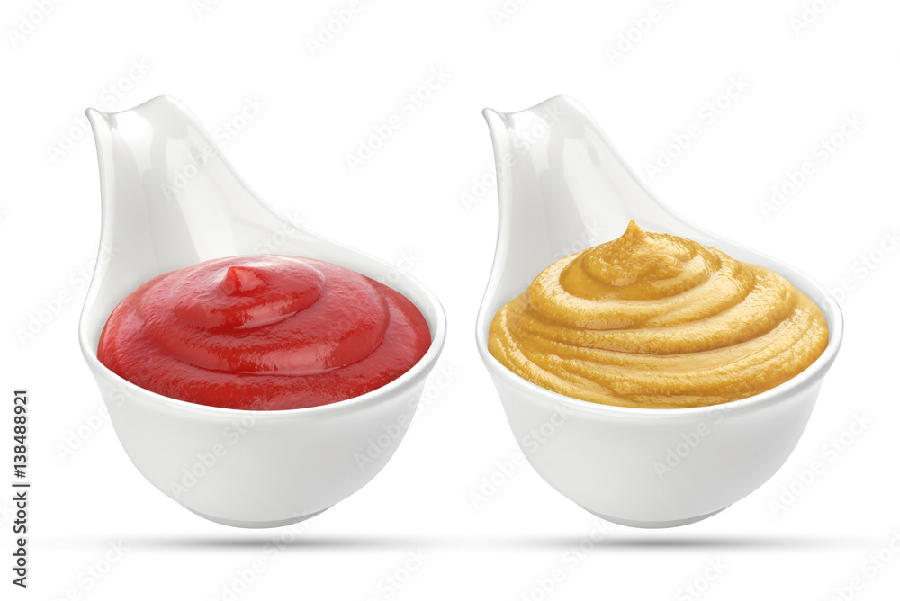 Ketchup and mustard sauces in bowl isolated on white background