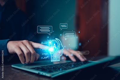 businessman using technology Global Internet connect Chatgpt conversation Chat with AI, Artificial Intelligence. using command prompt for generates something, Futuristic technology