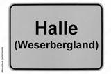 Illustration eines Ortsschildes der Gemeinde Halle im Weserbergland in Niedersachsen