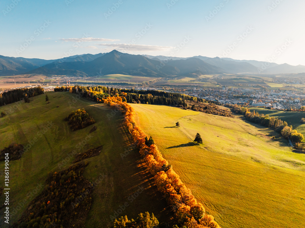 Sunset over Liptov region with High Tatras mountains around. Liptovsky Mikulas landscape, Slovakia.