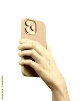 holding a smartphone in hand, capturing a photograph or video with a pink case. Fashionable, modern technology used for social media and digital photography isolated on white background..