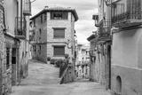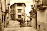 Fork of narrow streets with old stone houses in the town of La Fresneda, Teruel.