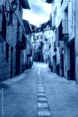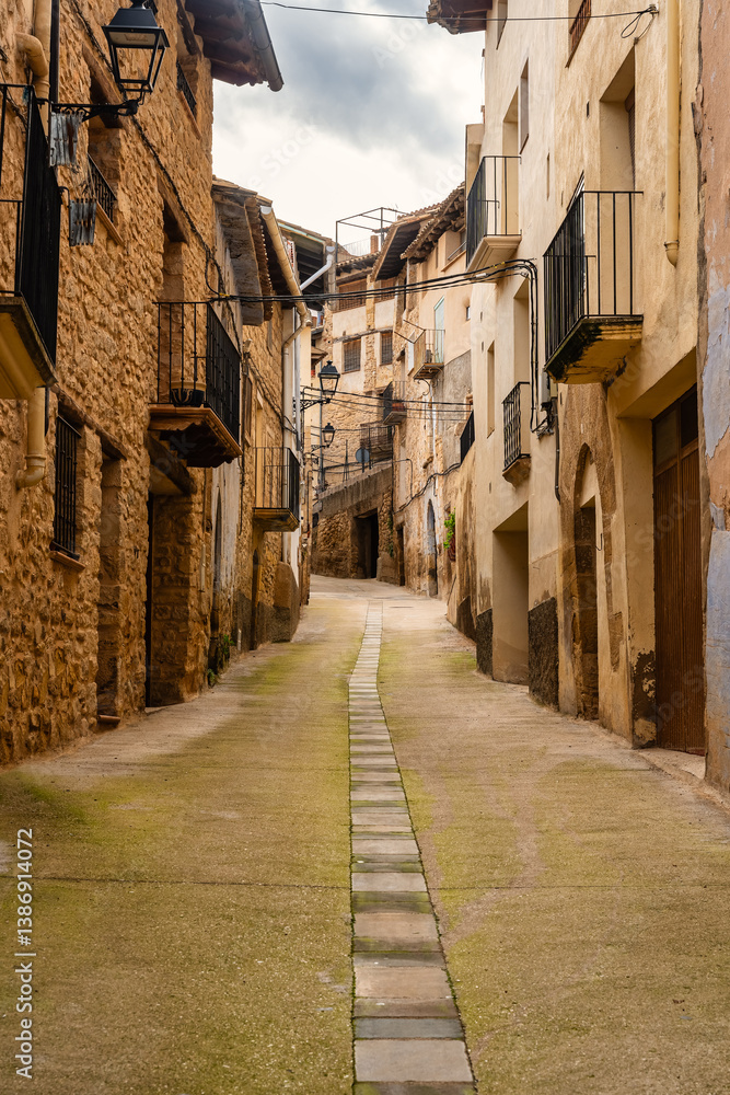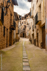 Narrow alleys on steep slopes that lead to the top of the hill of La Fresneda, Teruel.