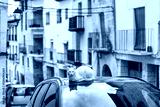 Stray cat resting on top of a car in the medieval town of La Fresneda, Teruel.