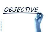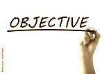 Hand writing OBJECTIVE on transparent board