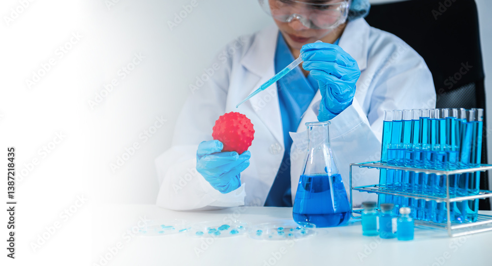 Scientist mixing chemical liquids in the chemistry lab. Researcher working in laboratory.