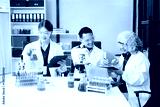 Dynamic science lab where a team of scientists collaborates on research, testing, and innovation