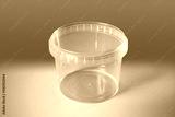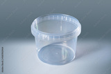 Transparent round plastic container made of polypropylene (PP) with a tight-fitting lid, used for food storage or packaging small items.