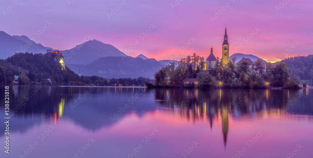 Bled with lake, island and mountains in background, Slovenia, Europe
