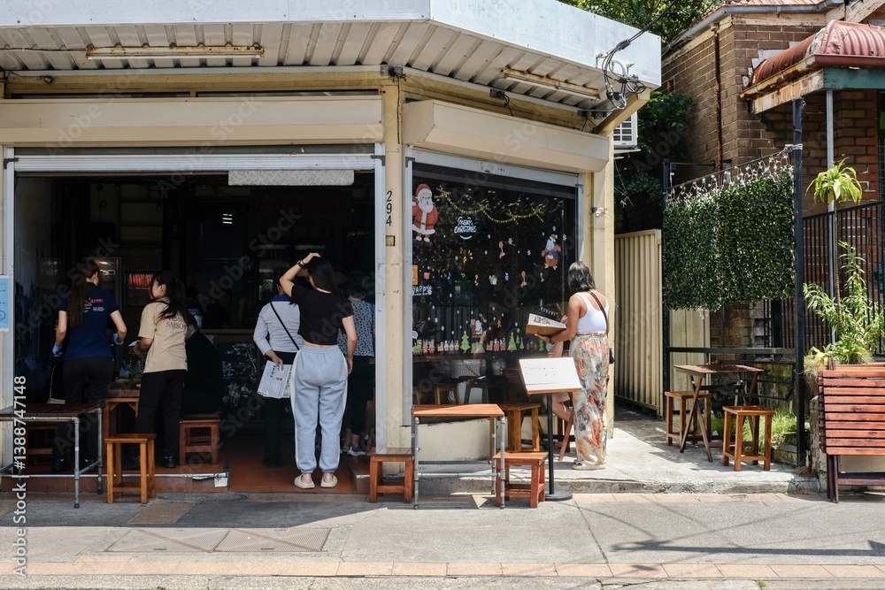 Marrickville, NSW - Dec 28, 2023: Customers queuing up to order food at VN Street Foods, a restaurant serving North Vietnamese street food such as pho tai lan, Hanoi bun cha and banh cuon in Sydney
