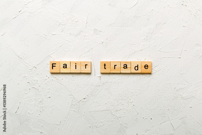 fair trade word written on wood block. fair trade text on cement table for your desing, concept