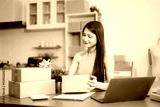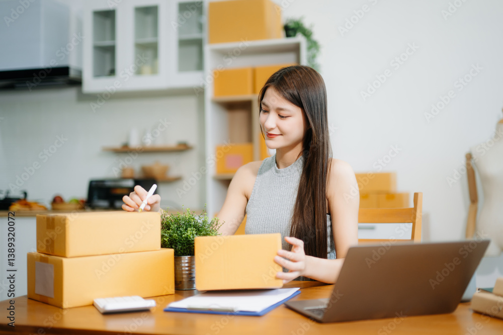 Young businesswoman managing online sales and shipping from a modern home office. Perfect